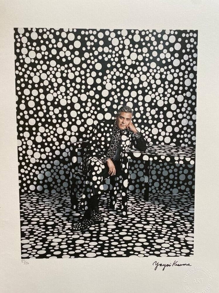 Yayoi Kusama George Clooney Signed in plate and Numbered Certificat of editing 28 x 38 cm Arches paper Comes unframed Signed in plate Certificate of editing Stamped Limited edition Delivered with insurance and tracking Number