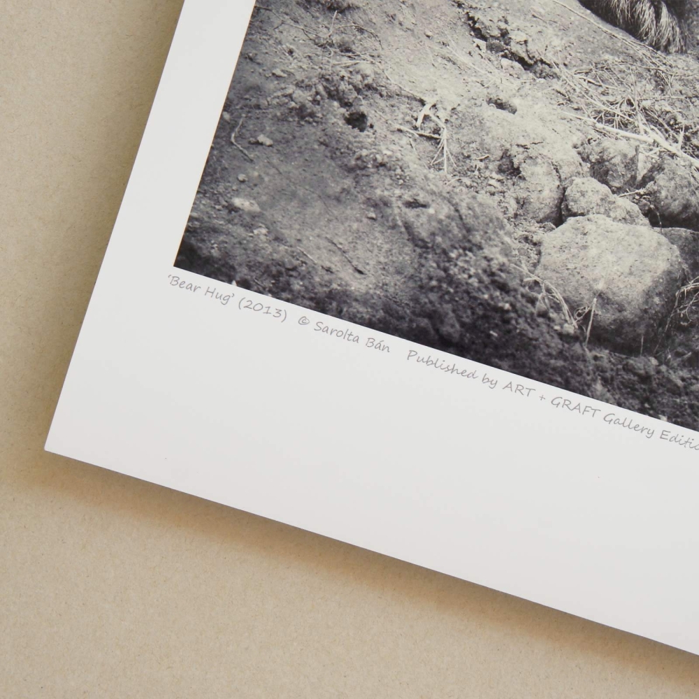 ● L'image réconfortante de Sarolta Bán "Bear Hug" - un moment tendre célébrant notre affinité avec le règne animal. ● Tirage chromogénique sur papier Fuji Crystal Archive. ● Format de papier 14" x 12" (36 x 30 cm) ● Taille de l'image 10" x 10" (25 x 25 cm) ● Signé dans la plaque ● Cachet de galerie numéroté à la main au dos ● Édition - 250 ● Titre sous l'image ● Cachet de galerie numéroté ● Certificat d'authenticité d'impression ● État NEUF ● Expédié roulé dans un tube en PVC robuste "résistant à l'écrasement" ● * VEUILLEZ NOTER - Cette impression n'est PAS encadrée