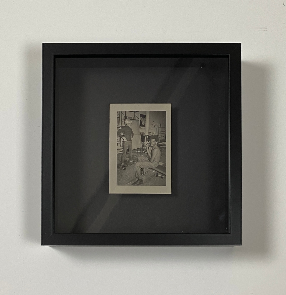 Photo originale avec cachet en creux 'Andy Warhol'. Sur la photo, on voit Andy Warhol avec Basquiat. Dans le cadre. Envoi assuré ou enlèvement possible.