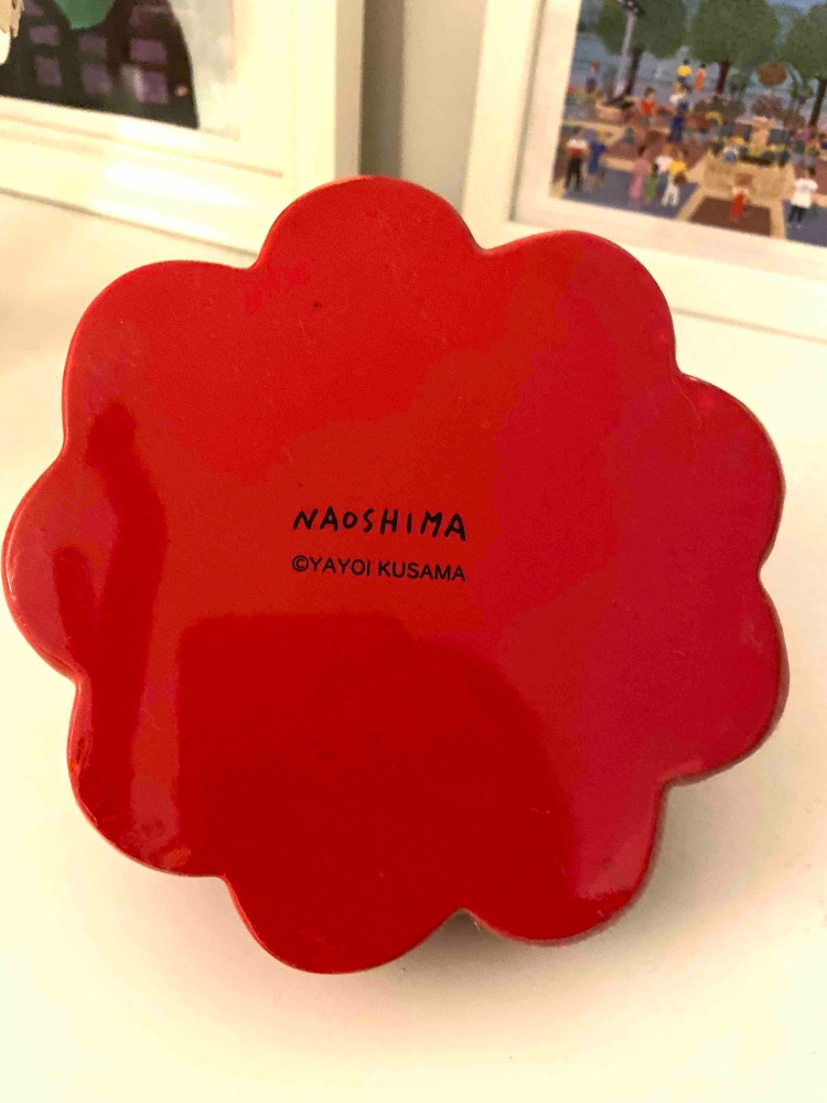 Yayoi Kusama est une célèbre artiste japonaise. Parmi ses oeuvre les plus célèbres figurent ses Pumpkins (citrouilles) à pois. Artiste : Yayoi Kusama (d'après) Titre : Naoshima Pumpkin (red & black) Boîte Verte Dimensions : 14 x 14 (diam) cm Résine