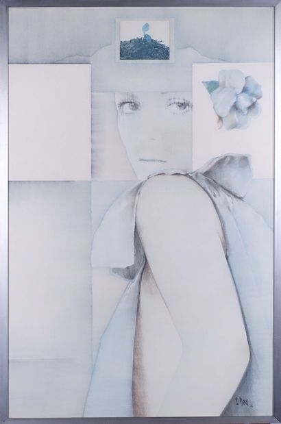 Oeuvre unique - techniques mixtes Signé à la main Daté '76 106x79cm Cadre original de Mara