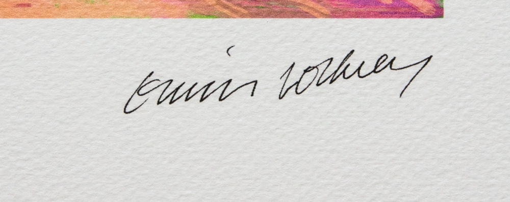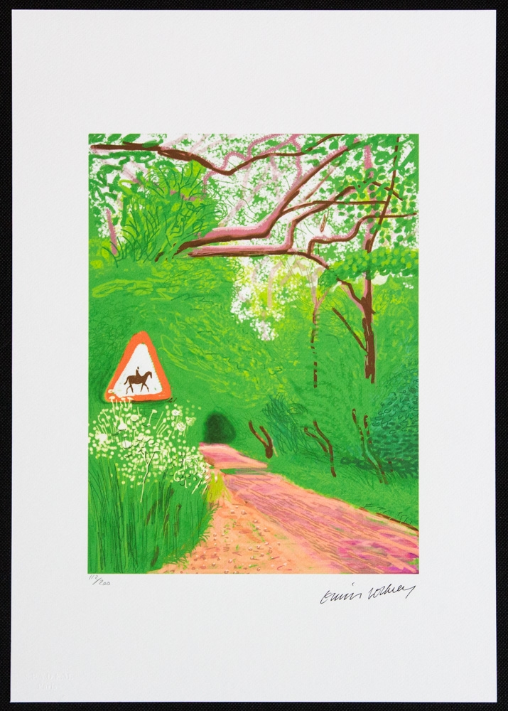 David Hockney (d'après) "The Arrival Of Spring In Woldgate" édition limitée à 200 exemplaires, lithographie offset, planche signée en bas à droite, numérotée au crayon en bas à gauche 112/200, papier coton épais, avec tampon en relief "SPADEM, Paris", format feuille 35 x 50 cm, sans documentation supplémentaire, vendu sans cadre ; nous offrons l'expédition en interne, si l'acheteur remporte plusieurs articles, nous combinerons l'expédition