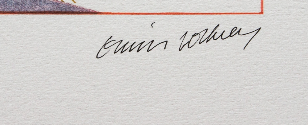 David Hockney (d'après) "Sun" from "Weather Series", édition limitée à 200 exemplaires, lithographie offset, planche signée en bas à droite, numérotée au crayon en bas à gauche 147/200, papier coton épais, avec tampon gaufrage SPADEM, Paris, feuille taille 35 x 50 cm, sans documentation supplémentaire, vendu sans cadre ; nous proposons l'expédition en interne, si l'acheteur remporte plusieurs articles, nous combinerons l'expédition