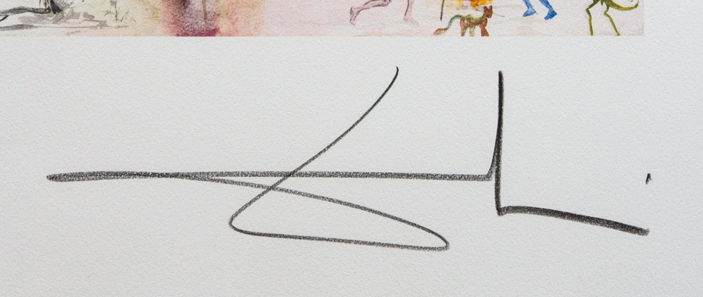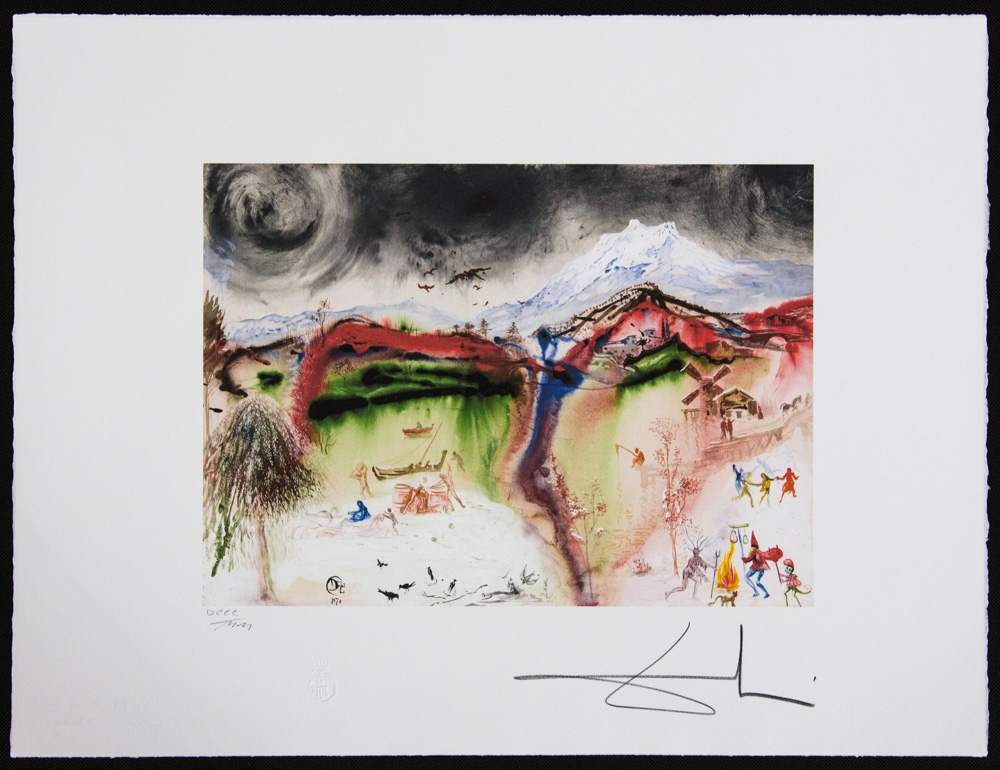 Salvador Dali (d'après) "Hiver" lithographie offset, format feuille 50 x 65 cm, signée en bas à droite "Dali", numérotée au crayon en bas à gauche DCCC/MM, édition limitée 2000, papier épais filigrané BFK Rives France, maison d'édition en bas centré cachet "G. Dali", sans documentation supplémentaire, vendu non encadré; nous offrons l'expédition interne, si l'acheteur gagne plusieurs articles, nous combinerons l'expédition