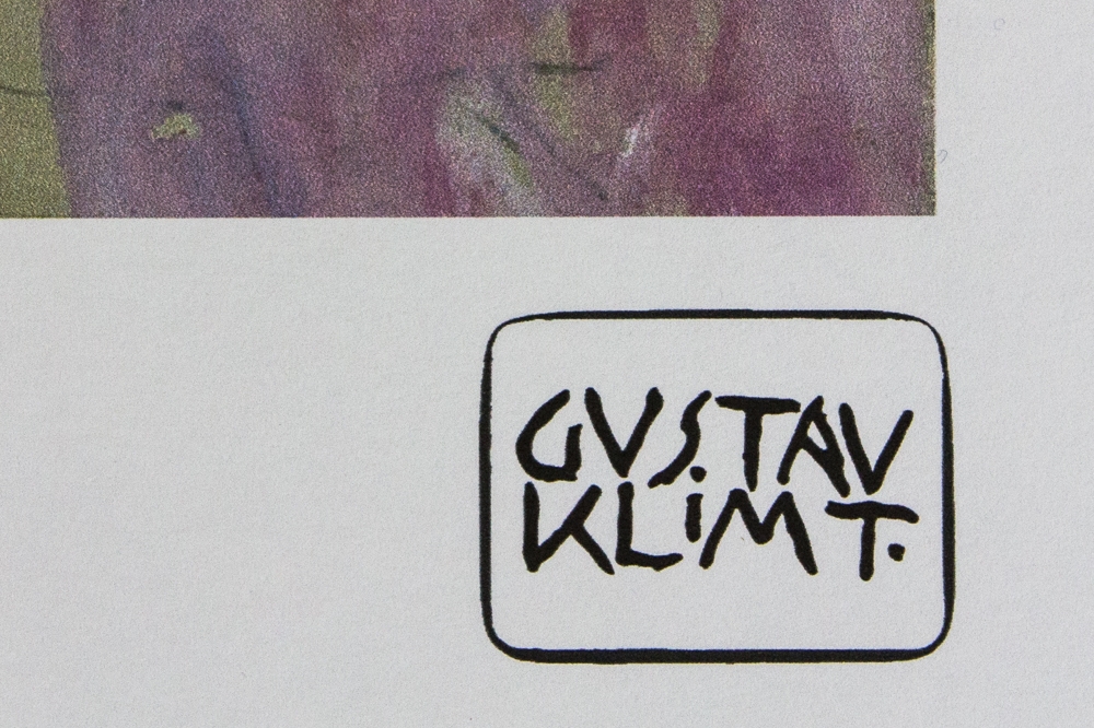 Gustav Klimt (after) "Portrait Of Ria Munk" limited edition of 200, offset lithography, plate signed bottom right, numbered with pencil bottom left 19/200, fine art paper, with La TREC Spa embossing, sheet size: 50 x 70cm, without additional dicumentation, sold unframed; we offer in-house shipping, if the buyer win multiple items, we will combine shipping