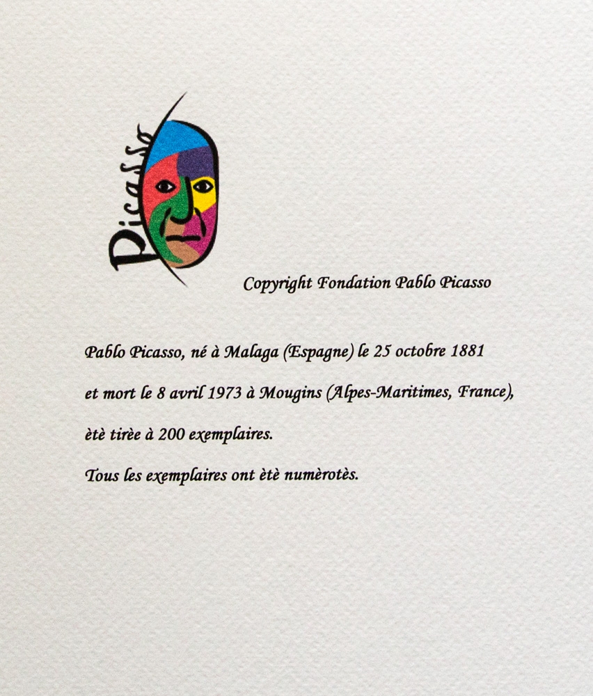 Pablo Picasso (d'après) "Portrait de Dora Maar", lithographie, édition limitée à 200 exemplaires, format feuille 50 x 70 cm, planche signée en bas à droite, numérotée au crayon en bas à gauche 190/200, papier vélin avec gaufrage Musée Pablo Picasso, sans supplément documentation, vendue non encadrée ; nous offrons l'expédition interne, si l'acheteur gagne plusieurs articles, nous combinerons l'expédition