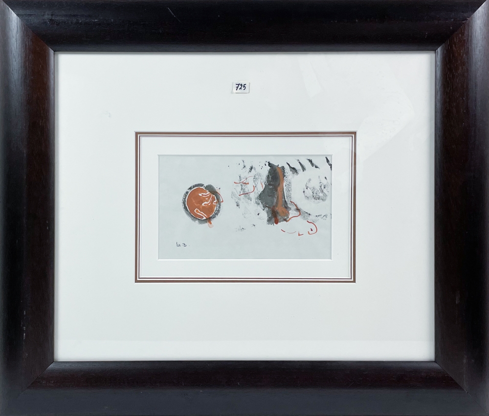 Belle oeuvre d'un artiste inconnu. L'oeuvre est signée des initiales W.B. L'oeuvre est encadrée.