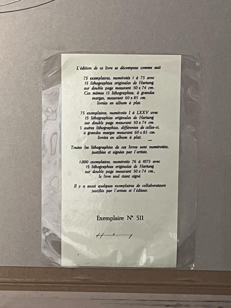 oeuvre graphique de hartung certificat d'édition au dos en bonne condition