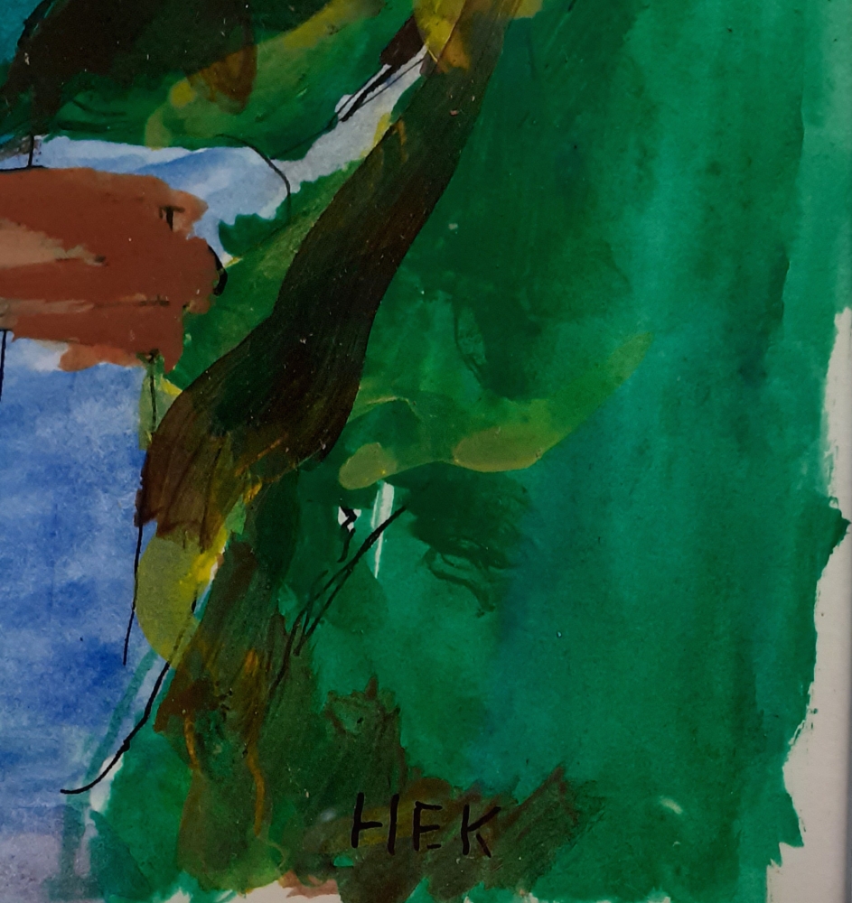 Hans Ebeling King, pour le train, qouache sur papier Johannes Gerardus (Hans) Ebeling Koning (né le 1er avril 1931 à Bilthoven) est un peintre, dessinateur et graphiste néerlandais. 1998 60 cm x 50 cm (Image : 36 cm x 29 cm) manuscrite au crayon (en bas à droite) Gouache sur papier encadrée dans un cadre en bois avec verre sans acide État : En très bon état. Des reflets peuvent être visibles sur les photos des uvres encadrées. Sera bien emballé et expédié en recommandé avec suivi et traçabilité