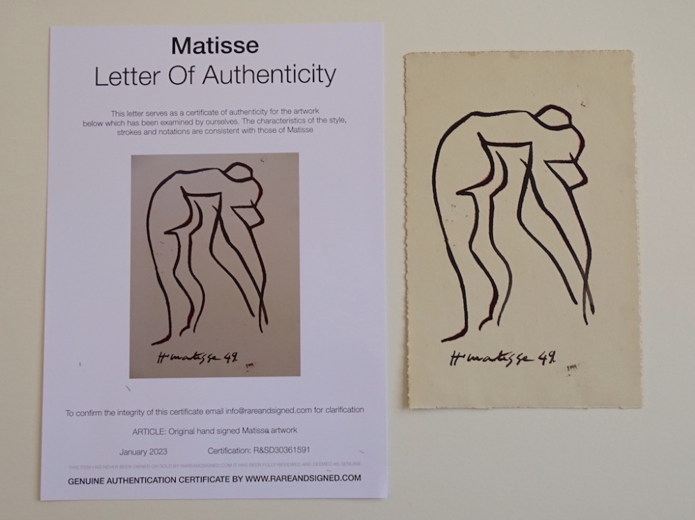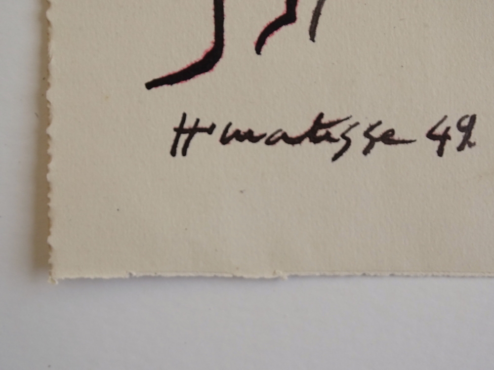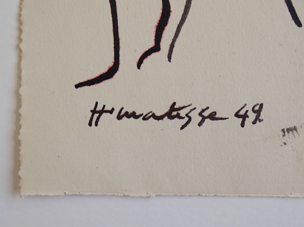 Henri Matisse (attributed), ink drawing Henri Matisse was a French visual artist, known for both his use of colour and his fluid and original draughtsmanship. He was a draughtsman, printmaker, and sculptor, but is known primarily as a painter.[1] Matisse is commonly regarded, along with Pablo Picasso, as one of the artists who best helped to define the revolutionary developments in the visual arts throughout the opening decades of the twentieth century, responsible for significant developments in painting and sculpture.