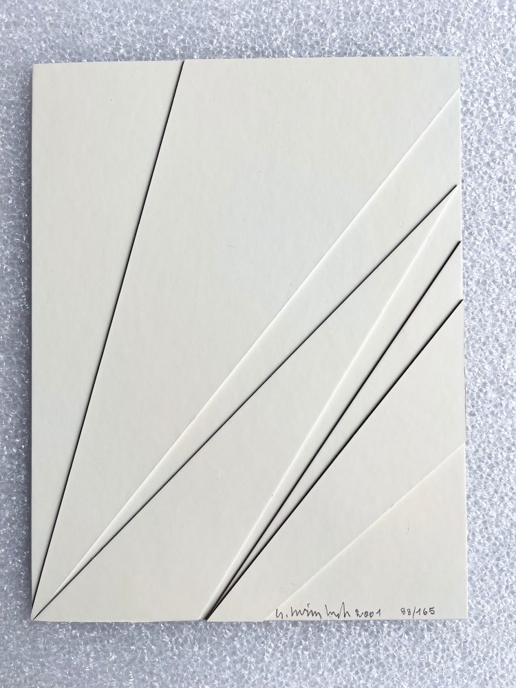 I sell a beautiful "Monochrome Relief" by Gilbert Swimberghe. The piece is a collage of hard cardboard painted in white from 2001. The piece is 22cm x 17cm and in very good condition. Numbered 88/165 and signed, dated in pencil by the artist.