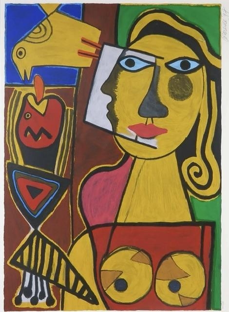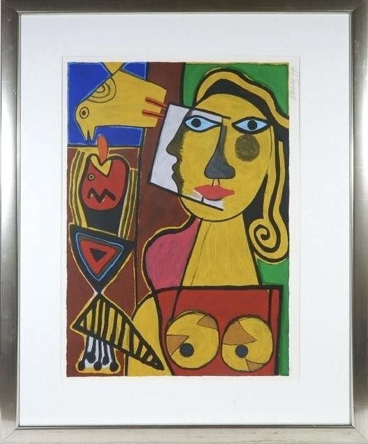 Sérigraphie avec femme et animaux de Corneille. L'oeuvre est bien cadrée. . Signé au crayon en bas à droite et daté 1997 Informations supplémentaires Très bonne condition. Numéroté et signé. Encadré.