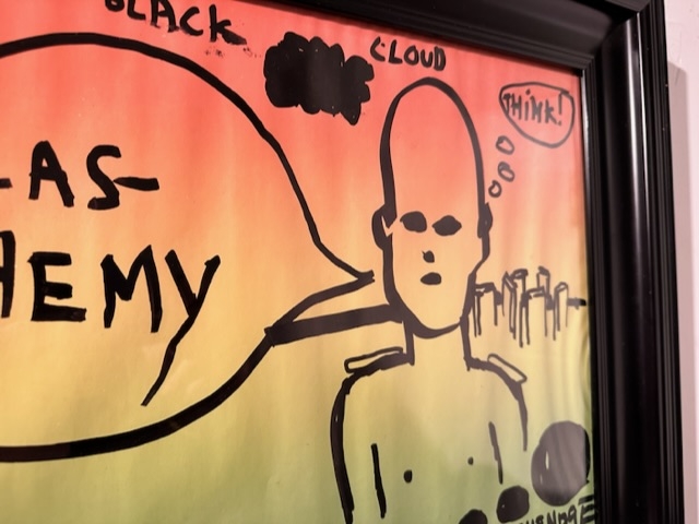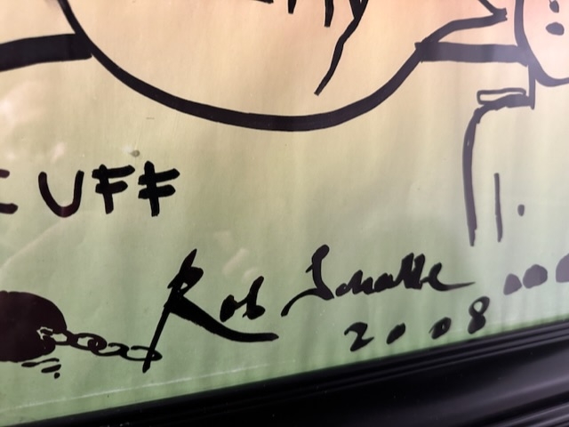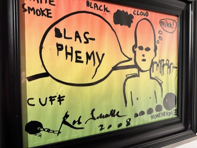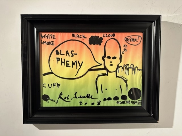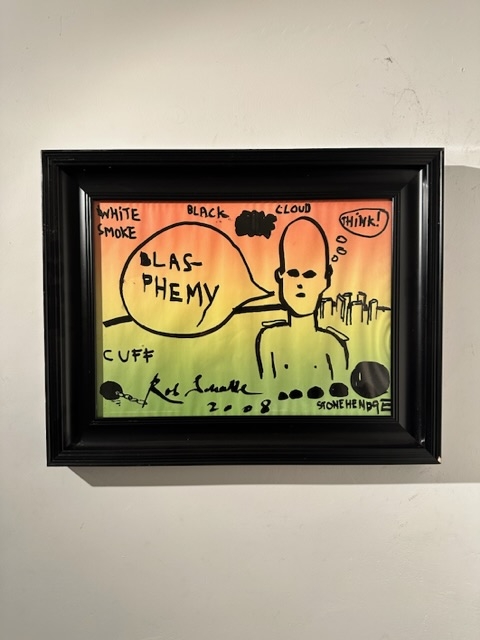 Grote originele stifttekening op gekleurd papier. Het werk is een origineel werk en afkomstig uit het Rob Scholte museum. Scholte is een beeldenmaker. Hij ordent en plaatst beelden uit de massamedia, uit zijn eigen omvangrijke archief in een nieuwe context, waarmee hij die beelden van een nieuwe betekenis voorziet. Vaak vindt men in zijn werken tegenstrijdigheden en tegenstellingen die in hun nieuwe context 'overwonnen' worden.