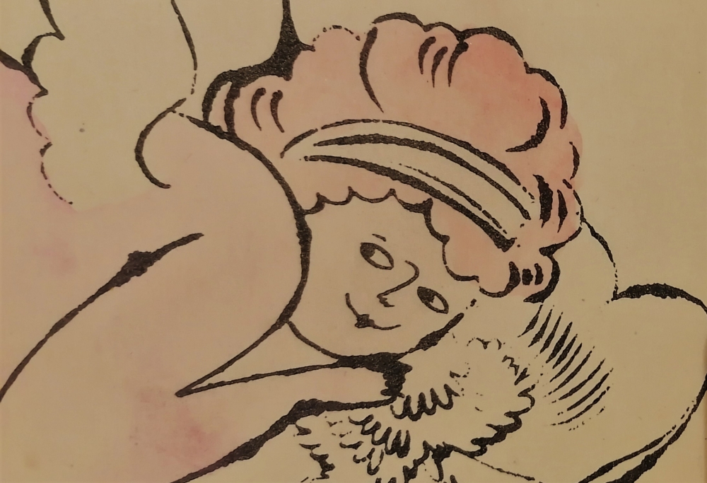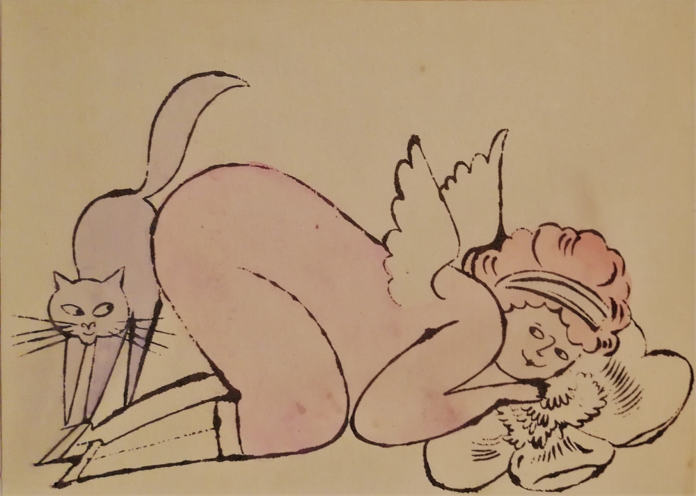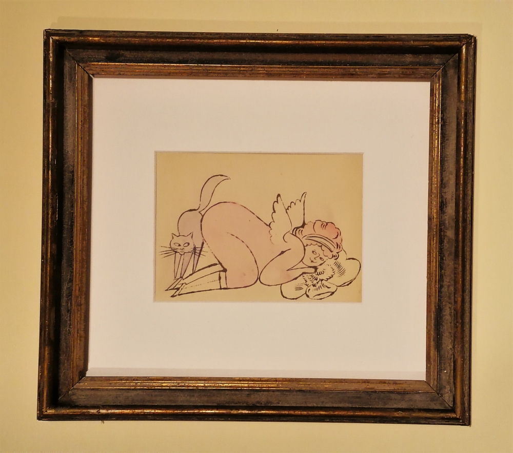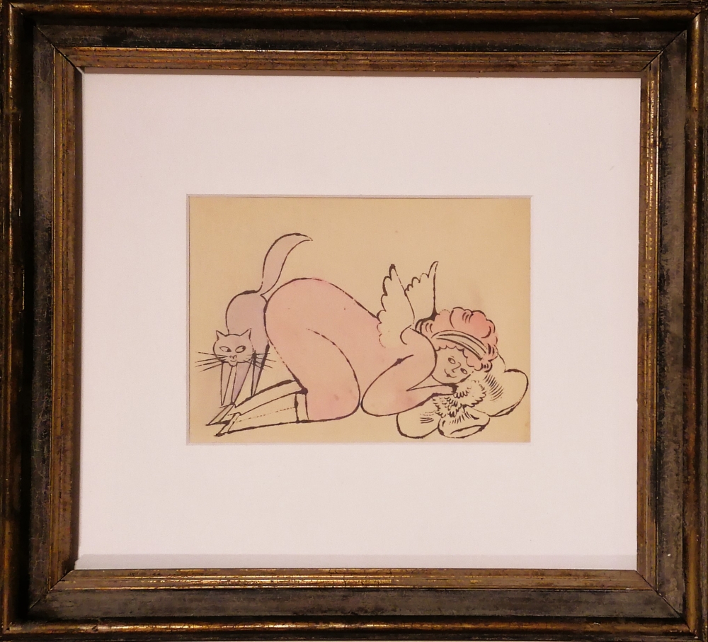 ANDY WARHOL (1928-1987) Dehors; AU FOND DE MON JARDIN, 1956 Oeuvre unique de lithographie coloriée à la main à l'aquarelle. Les dimensions à l'intérieur du passe-partout sont de 19 x 26 cm Remis dans le cadre d'origine, 49 x 55 cm