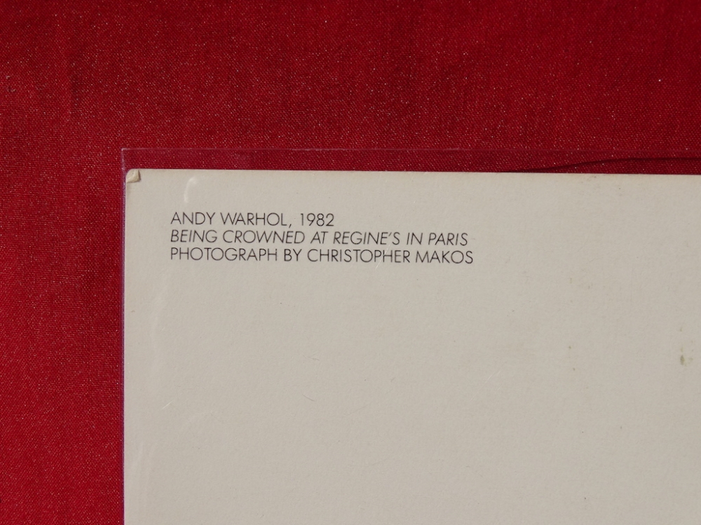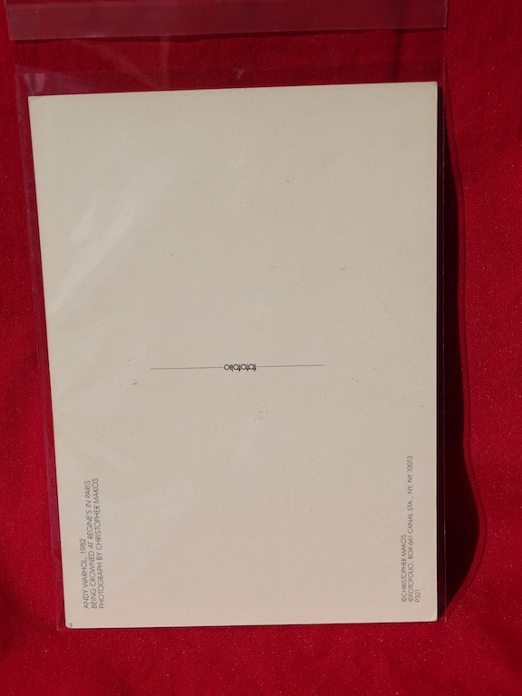 Andy Warhol (1928-1987) - The King Andy Warhol, hand signed original postcard 15x10.5 The front of the postard features Andy Warhol's signature in black marker in the center. Warhol has been the subject of numerous retrospective exhibitions, books, and feature and documentary films. The Andy Warhol Museum in his native city of Pittsburgh, which holds an extensive permanent collection of art and archives, is the largest museum in the United States dedicated to a single artist. Warhol has been described as the "bellwether of the art market". Many of his creations are very collectible and highly valuable. His works include some of the most expensive paintings ever sold.[7] In 2013, a 1963 serigraph titled Silver Car Crash (Double Disaster) sold for $105 million. In 2022, Shot Sage Blue Marilyn (1964) sold for $195 million, which is the most expensive work of art sold at auction by an American artist. Contents