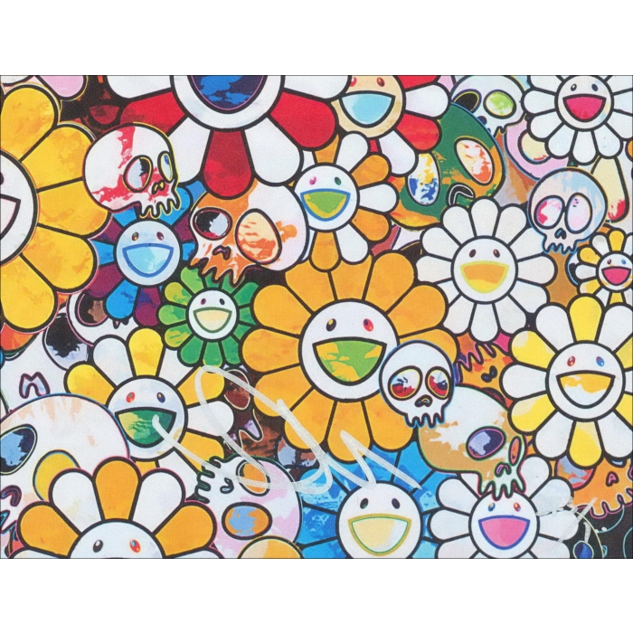 Murakami Takashi est un des artiste pop art es plus coter au monde certain l'appel le Nouveau Andy Warhol Takashi MURAKAMI : Skulls and flowers 2013 Impression offset quadrichromie avec fond métallique, sur papier épais d'un format de 69 x 53 cm. uvre signée et numérotée à la main par l'artiste en bas à droite Cette oeuvres est une edition de 300 exemplaires Livraison rapide avec suivi et assurance