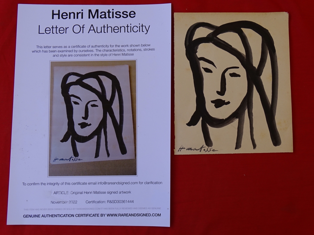 Henri Matisse (attributed), ink drawing Henri Matisse was a French visual artist, known for both his use of colour and his fluid and original draughtsmanship. He was a draughtsman, printmaker, and sculptor, but is known primarily as a painter.[1] Matisse is commonly regarded, along with Pablo Picasso, as one of the artists who best helped to define the revolutionary developments in the visual arts throughout the opening decades of the twentieth century, responsible for significant developments in painting and sculpture.