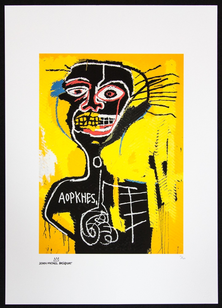 Jean-Michel Basquiat (after) "Cabeza" offset lithography, sheet size 50 x 70 cm, plate signed bottom left, numbered bottom right with pencil, limited edition 80/100, bottom right publishing house stamp, cotton paper, without additional documentation, sold unframed; we offer in-house shipping, if the buyer win multiple items, we will combine shipping