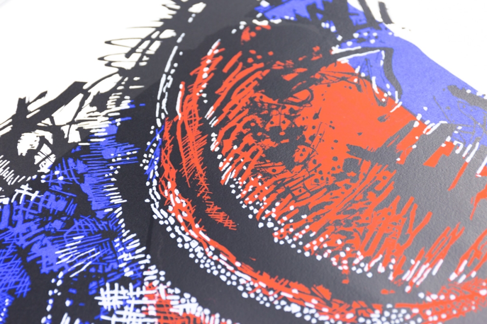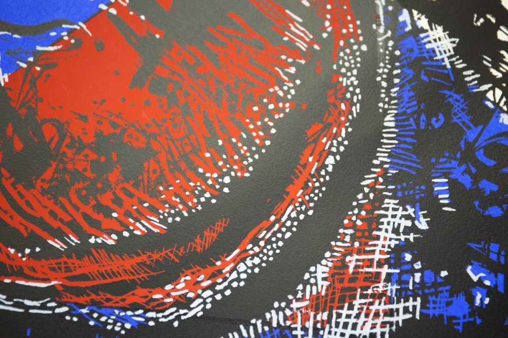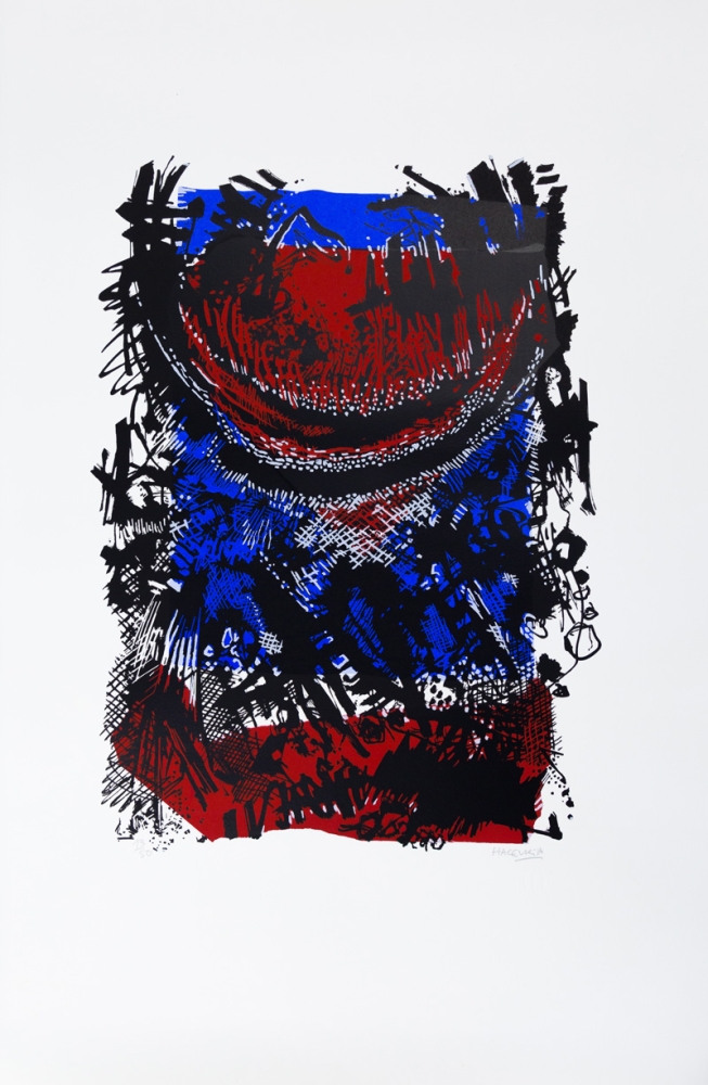 Color lithograph of Maurice Haccuria (1919-1991), Belgian painter, sculptor and graphic artist.