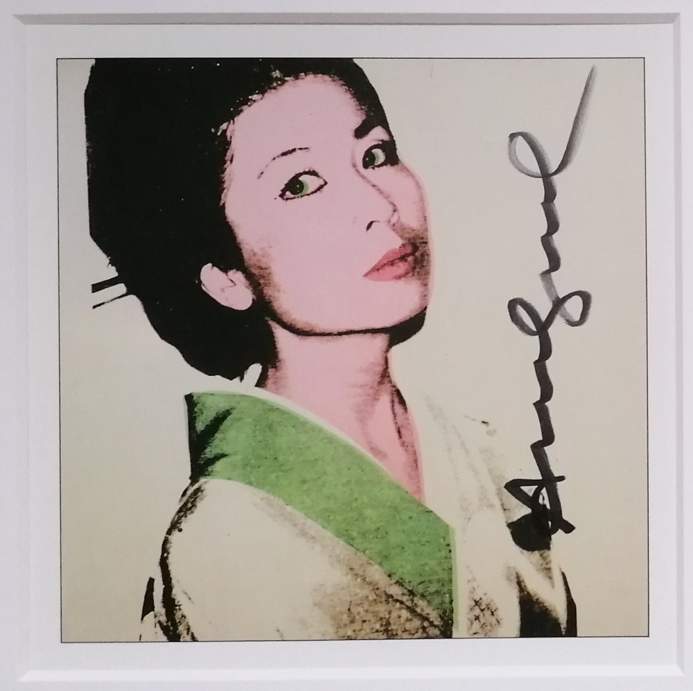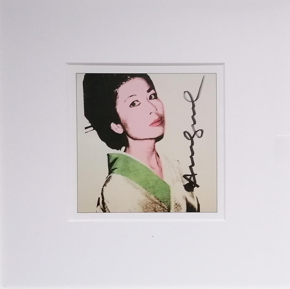 Andy WARHOL (1928- 1987) Portret van Kimiko Powers uit 1974 Een gesigneerde boek illustratie uit "Andy Warhol: Portraits of the 70s. A limited edition of these lithographs were published in a worldwide edition of just 200 copies." Afmetingen zijn 18 x 18 cm. Mooi ingelijst, 51 x 51 cm. Met een certificaat op de achterkant.