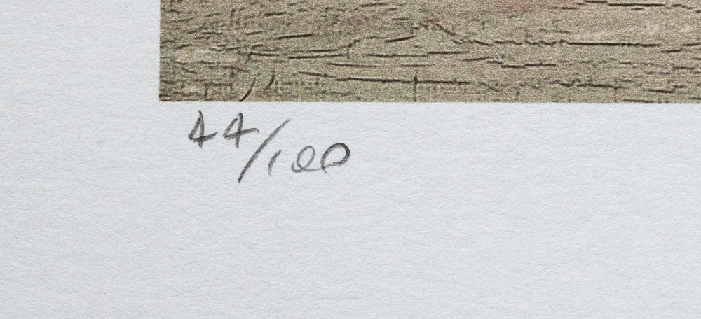 René Magritte (d'après) Lithographie offset "Plagiat", édition limitée à 100 exemplaires, planche signée en bas à droite, numérotée au crayon en bas à gauche 44/100, cachet de la maison d'édition en bas à gauche "SPADEM, Paris", papier d'art, format feuille : 50 x 70cm, sans documentation supplémentaire, vendu sans cadre ; nous offrons l'expédition interne, si l'acheteur gagne plusieurs articles, nous combinerons l'expédition
