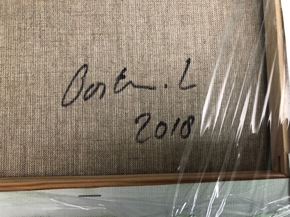 Serie van 5 schilderijtjes over vogeltjes. Het zijn gemengde technieken op linnen. Dit is vogeltje 4. Het is een acryl achtergrond met airbrush gespoten om een fotografische onscherpte te krijgen. Het vogeltje zelf is in olieverf geschilderd. Hierdoor krijg je een fraai scherp onscherp beeld. Meer werk van Lambert Oostrum is te zien op : www.lambertoostrum.nl. In 1987 heeft Lambert oostrum De Alfons Blomme Prijs in Roeselare gewonnen.Meer info is te vinden op zijn website.