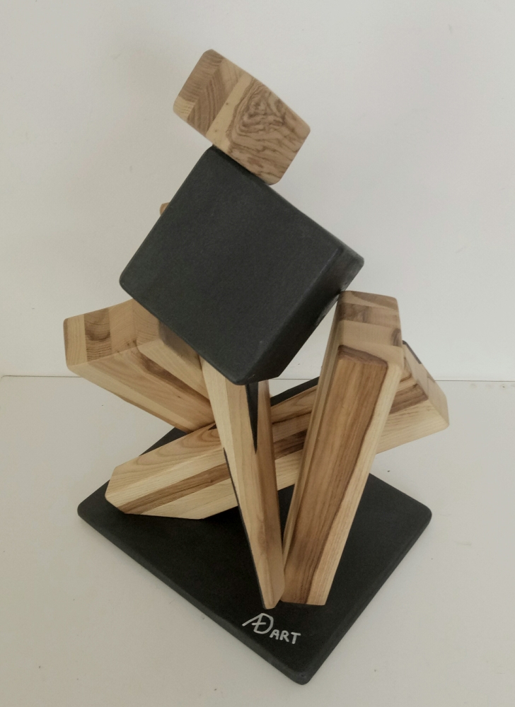 "Rimembranza" is an artistic sculpture in solid ash wood and metal effect paint; oil finish. It is an object that creates a unique atmosphere in the environment in which it is located and, if illuminated, creates suggestive shadows; it is a unique piece. Brand A + D art