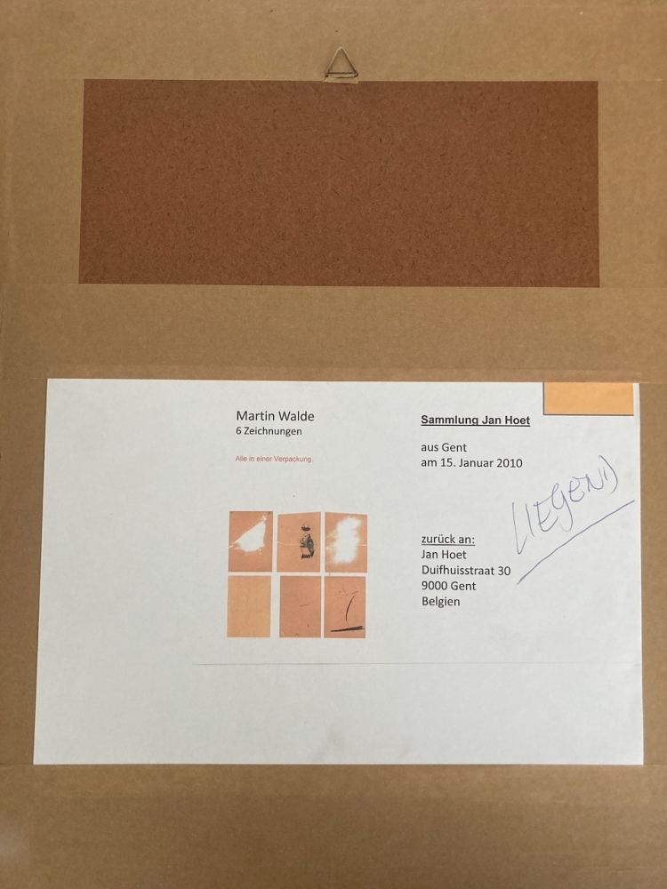 Deze 5 werken komen uit de persoonlijke (ex) collectie van Jan Hoet. Martin Walde is een wereldwijd gerenommeerde beeldhouwer, tekenaar, uitvinder en ontdekker; hij maakt vooral dynamische installaties. Deze voorziet hij van niet zelden wetenschappelijke teksten en essays. Hij ontwikkelde een innovatieve, onnavolgbare en succesvolle praktijk als kunstenaar. Dit is reeks van 5 originele en authentieke werken in gemengde techniek in de typische stijl van Martin Walde Origineel ingelijst door de kunstenaar 48,5cm x 36cm. In goede originele staat. Daar er weinig originele tekeningen van Martin Walde op de markt komen is dit een buitenkans voor elke kunstliefhebber.