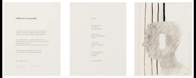 Gedicht door Roland Jooris en litho door Raveel. Door beiden gesigneerd in potlood Professioneel ingekaderd. 3 x (32 x 24 cm) en met lijst 92 x 92 cm. Roger RAVEEL (Machelen 1921 - Deinze 2013) graficus, schilder, tekenaar Opleiding: Roger Raveel volgde meerdere kunstopleidingen: Stedelijke Academie van Deinze en de Koninklijke Academie voor Schone Kunsten van Gent. Daarnaast is hij in de periode 1960-1973 docent geweest aan de academie van Deinze. Roger Raveel heeft zijn hele leven in Machelen -aan-de-Leije gewoond en gewerkt.