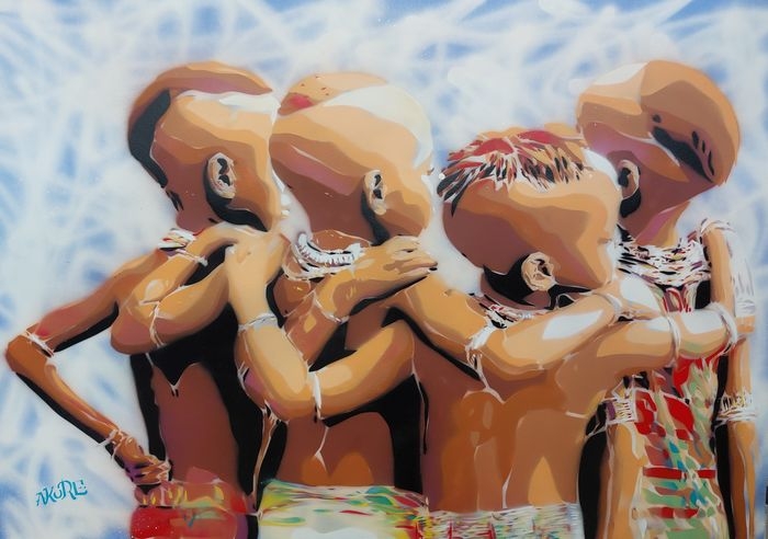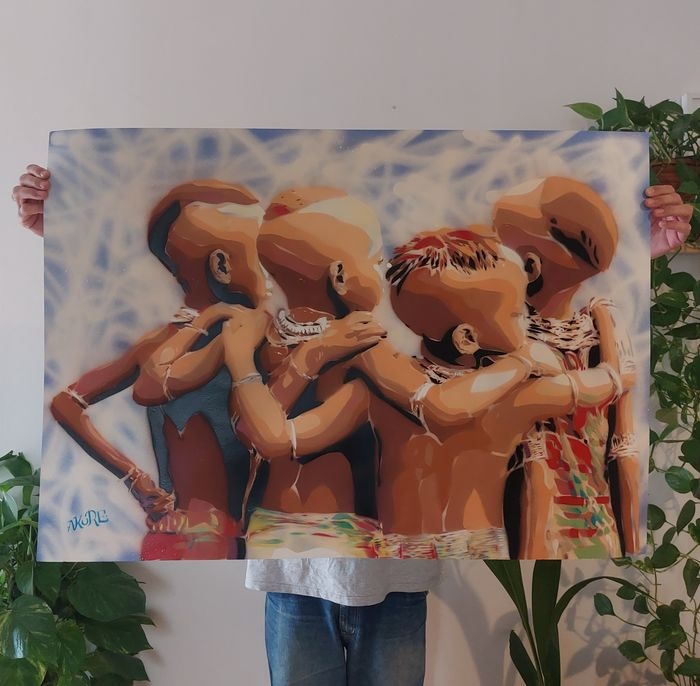 Akore 'The Power of Friendship XXL'' MixedMedia Signed (#0463) 2010-Present Original MixedMedia painting by AKORE. Signed by the artist and with certificate of authenticity. MixedMedia on thick paper (aerosol, acrylic, stencil) Hand signed, size: 100×70 cm. In good condition. Akore is considered one of the most active and recognized urban artists in Barcelona today. He has participated in numerous individual and collective exhibitions, events and international projects. His work has been published in National Geographic, Greenpeace, MTV, El Periódico de Catalunya, La Vanguardia, among others, and he starred in the art documentary series 'This is Art' (TV3 / Movistar+), which screened in more than 50 countries across worldwide. He is known in the urban art scene for his colorful, powerful and expressive Afro-graffiti. His unique style is centered around post-graffiti and has been defined as primitive, tribal, abstract, hip funk, electro-afropunk, and is called "Afrocolor". His portraits and paintings of African tribal women reflect the soul of Mother Africa, with whom he has always felt spiritually connected. His work is clearly influenced by urban culture, hip hop, the African American movements and culture, for African aesthetics, Street Art, Pop Art and graphic design. Akore is part of the same street art movement as: Banksy / Kaws / Os Gemeos / Shepard Fairey "Obey Giant" / Felipe Pantone / DZIA / Dan 23 / Cranio / Keith Haring / Arsham / Chevrier / Dillon Boy / Basquiat / Mr Brainwash / Maat Gondek / Space Invader Kit / JR / Murakami / Monopoly / COPE2 / C215 / Pichiavo / Futura2000 / Vhils / Alice Pasquine / Borondo / Bom-K / Koons /D*Face / Saner / Tristan Eaton, among others. Photos are part of the description, see pictures to judge by yourself its overall condition. Be safely packaged and sent worldwide.