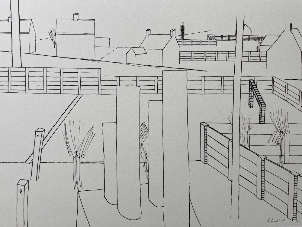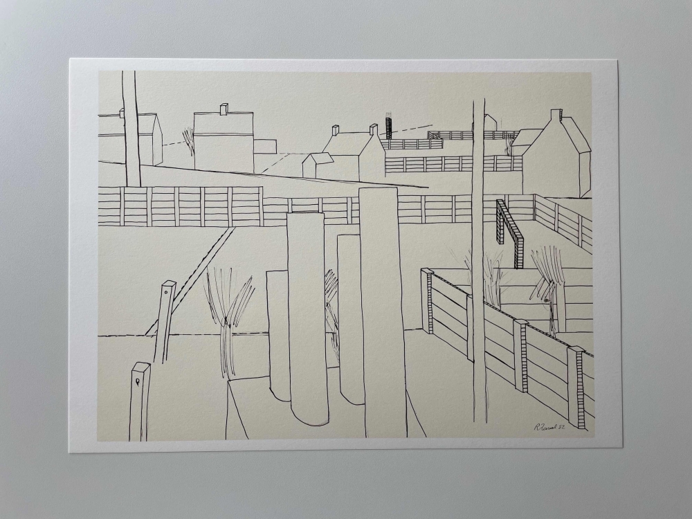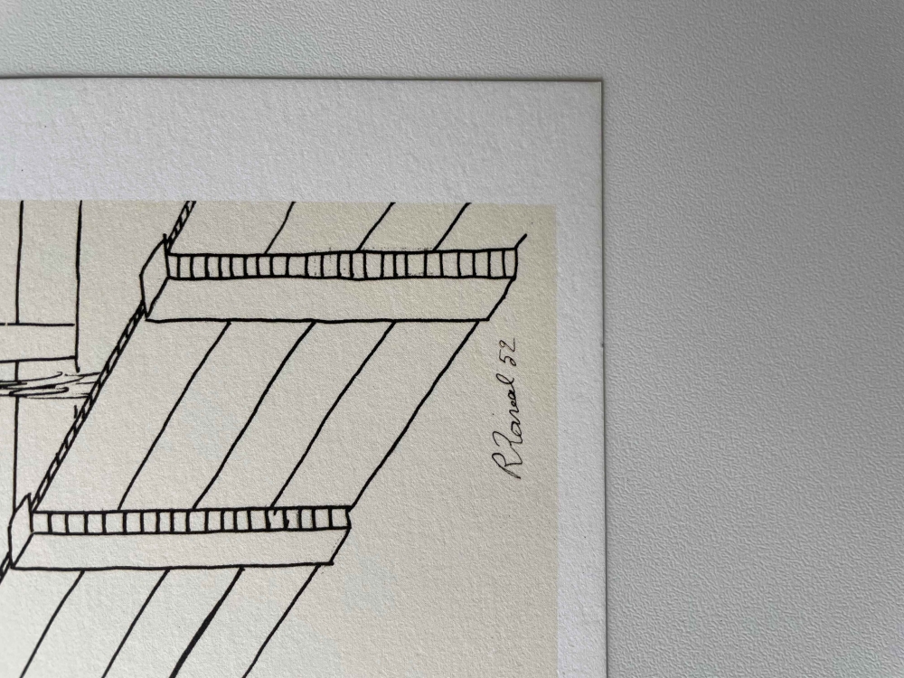 Mooie litho van beroemde Belgische kunstenaar Roger Raveel, afkomstig uit de folio 'Hedendaagse Belgische Tekenaars' uitgegeven door Louis Lebeer in 1977. De Litho is gedrukt door Photogravure Laconti in 1977 op stevig mat dik papier. Titel: 'Grafisch Panorama met doel' Jaartal: 1952 maar gedrukt n 1977 Afmetingen beeld: 45 cm x 32 cm Oplage: 96/750 (zie laatste foto, dit blad zit niet mee in de koop) Gesigneerd: 'Raveel' in de druk Materiaal: Lithografie op velijn Aquarel Torchon Ingelijst: Nee Conditie: In zeer goede staat. opmerking: de laaste 2 pagina's zijn toegevoegd om de provenance te illustreren en worden niet mee verkocht.