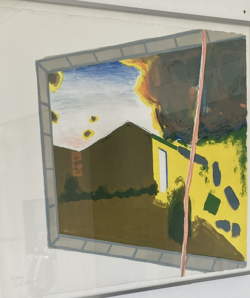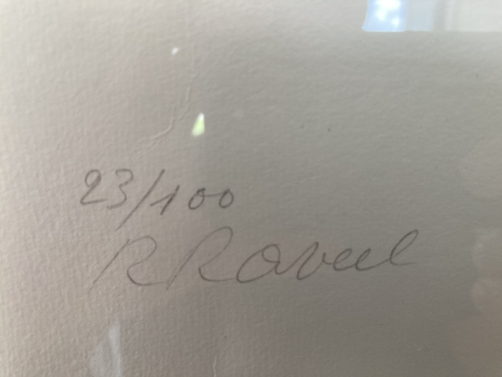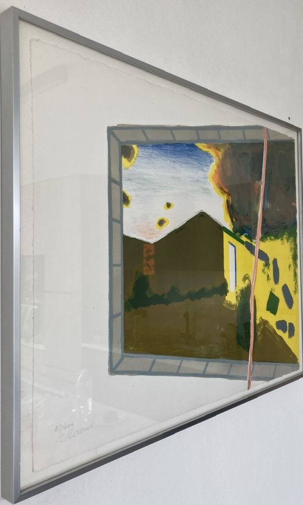 Kleurenlithografie uitgegeven door printshop amsterdam. Gedrukt door Piet Clement. Zwevend ingelijst. Een van de mooiste lithos van raveel qua kleurgebruik en expressie. Bij voorkeur ophalen, verzenden kan op risico van glasbreuk voor de koper.
