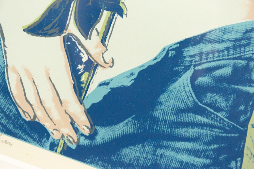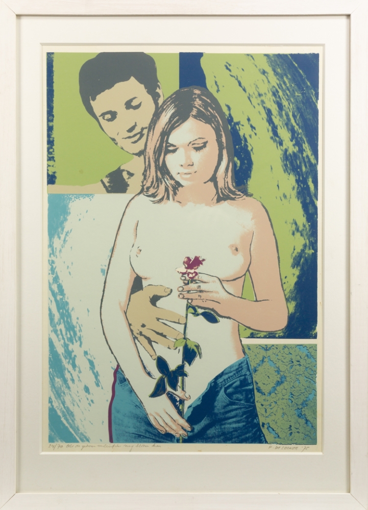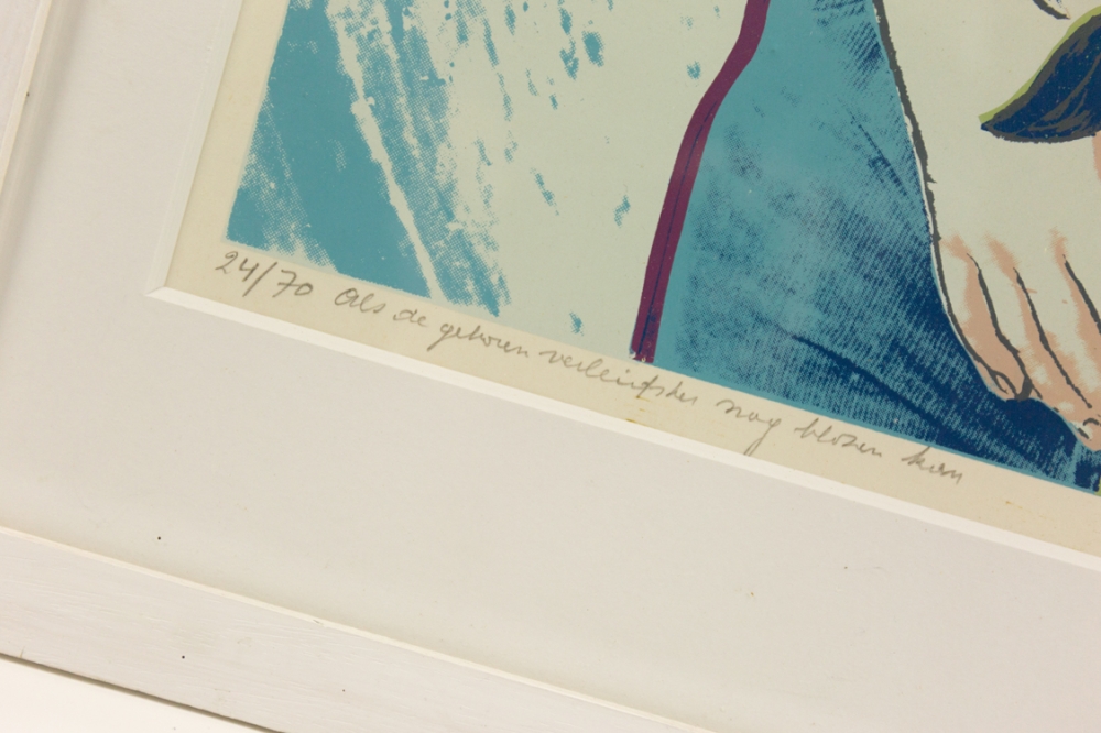 Zeefdruk van Paul De Cocker gelimiteerd op 70 exemplaren, met de hand genummerd, getiteld en gesigneerd.