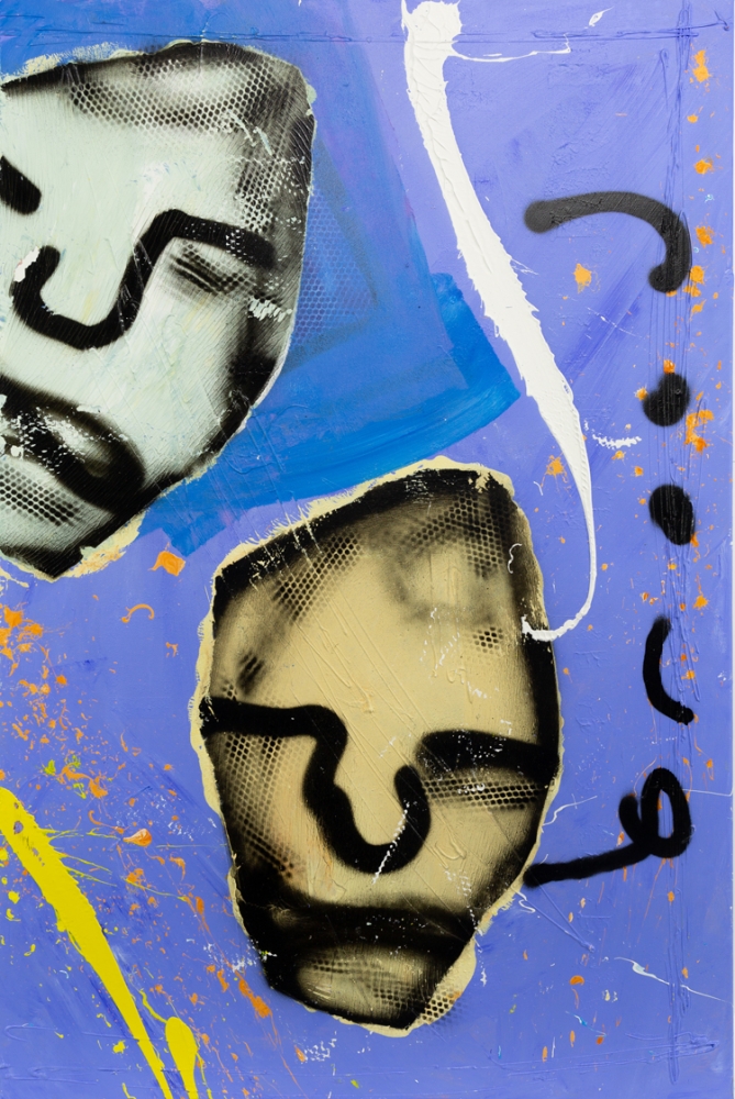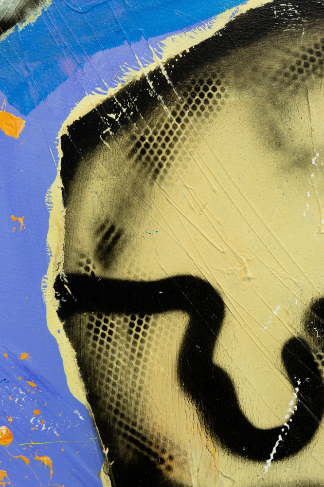 Origineel, uniek schilderij van Herman Brood, getiteld Head II. Acrylverf op canvas, verticaal gesigneerd met spuitbus aan de rechterkant.