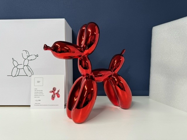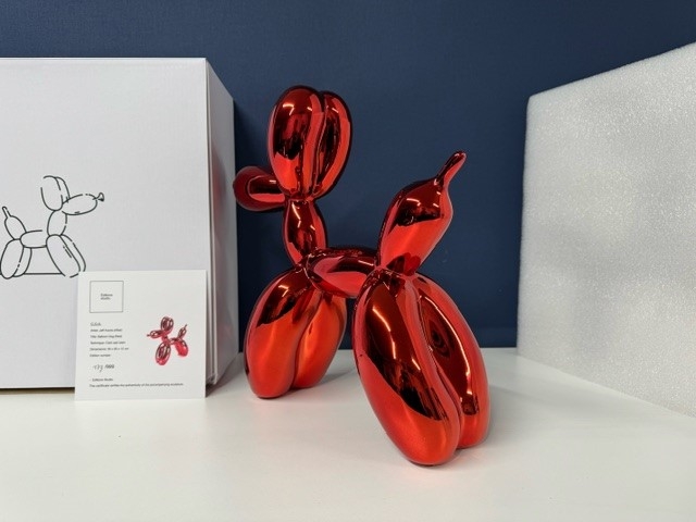 Balloon Dog in 'RED'. Originele verpakking en certificaat aanwezig. Na de release binnen enkele minuten uitverkocht! Dit is de eerste zeldzame uitgave gelimiteerd op 999 stuks wereldwijd. Dit is nr. 173. Zeer solide en interessante investering. Zorgvuldige, snelle en verzekerde verzending. Meer info: Jeffrey Jeff Koons (geboren 21 januari 1955) is een Amerikaanse kunstenaar wiens werk wordt gedomineerd door de themas banaliteit en verleiding. Hij woont en werkt in zowel New York City en zijn woonplaats York, Pennsylvania. Jeff Koons is zonder twijfel een van de belangrijkste levende kunstenaars en zijn werk is opgenomen in de meest vooraanstaande hedendaagse (museum) collecties ter wereld. Koons zijn verdienste ligt in het verwerken van kitscherige elementen in Kunst met de grote K, waardoor zijn werk, in één adem met dat van Andy Warhol, postmodernistisch wordt genoemd. Koons werk vertoont overeenkomsten met Pop Art, in zoverre dat hij elementen uit lagere kunst haalt en deze verwerkt in hogere kunst. Zijn werk wordt tot de categorie Neo Pop Art gerekend waarbij men in het geval van Koons spreekt van überkitsch: kitsch die zo sterk wordt aangezet, dat die niet meer te genieten is en juist daaraan zijn kunstzinnigheid ontleent. De werken van Koons worden verkocht voor astronomische bedragen, zo werd in 2013 tijdens een hedendaagse kunstveiling bij Christies in New York Koonss Balloon Dog Orange verkocht voor ruim 58 miljoen dollar, het duurste werk ooit voor een nog levende kunstenaar. Van de Balloon Dog heeft Jeff Koons een aantal gelimiteerde reproducties vervaardigd welke bij Kunsthuizen verkrijgbaar zijn.