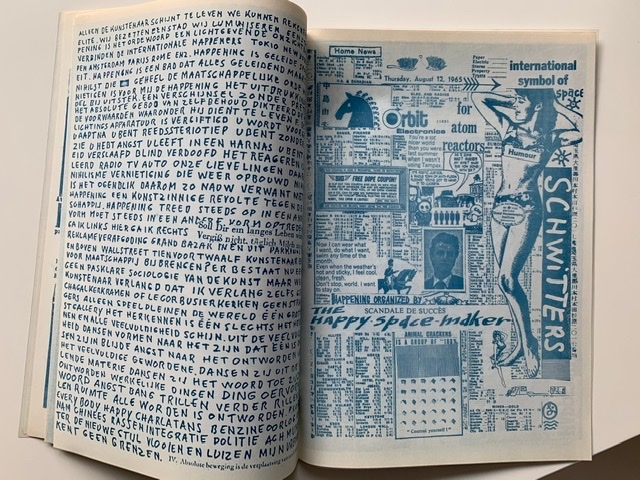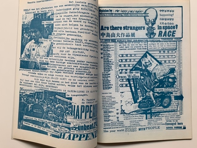 Hugo Heyrman, Panamarenko, Yoshio Nakajima et al. (Eds.) - Happening News # 1. Magazine lié à Provo. Contenu: se passe à la Groenplaats, Anvers; Yoshio Nakajima; Arrivé au Kursaal d'Ostende; Jan Cremer; The Happy Spacemaker. Couvert dans un emballage en plastique comme initialement émis. Magazine 1ère édition 1ère édition. Editeur: Happening News, Anvers. Année: 1965. Dimensions: 30,1 x 21,5 cm. Pages: 16. Langue: néerlandais.