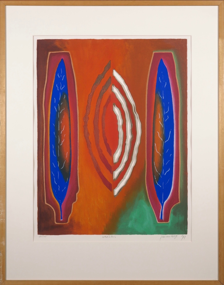 Prachtige Litho van de Nederlandse kunstenaar Jan Van Delft. Het werk is getiteld en genummerd - Wachters - nummer 93/120. Het werk is professioneel ingekaderd en meet 92,5 cm hoogte en 72,5 cm breedte. Het werk is uit 1997