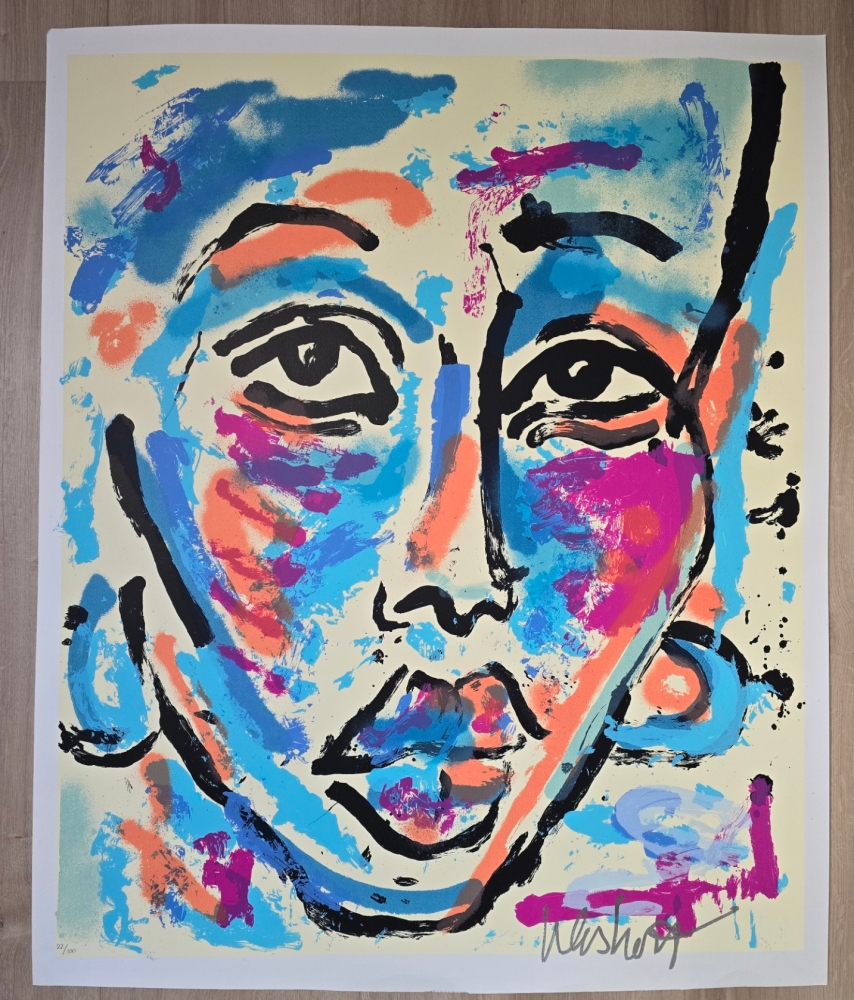Zeefdruk van Peter Klashorst - Nema Afmeting blad: 90 x 75 Gesigneerd: Hand gesigneerd met Marker Oplage: 100 ex. Het oplagenummer op de foto kan afwijken van het verkochte. Als wij meerdere exemplaren hebben in gelijke conditie maken wij niet voor elk blad een nieuwe foto. Verzending goed verpakt in koker en aangetekend/verzekerd