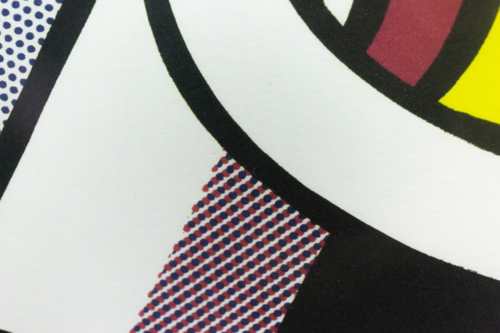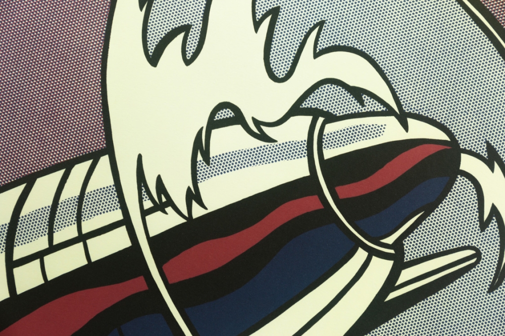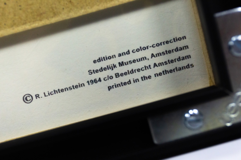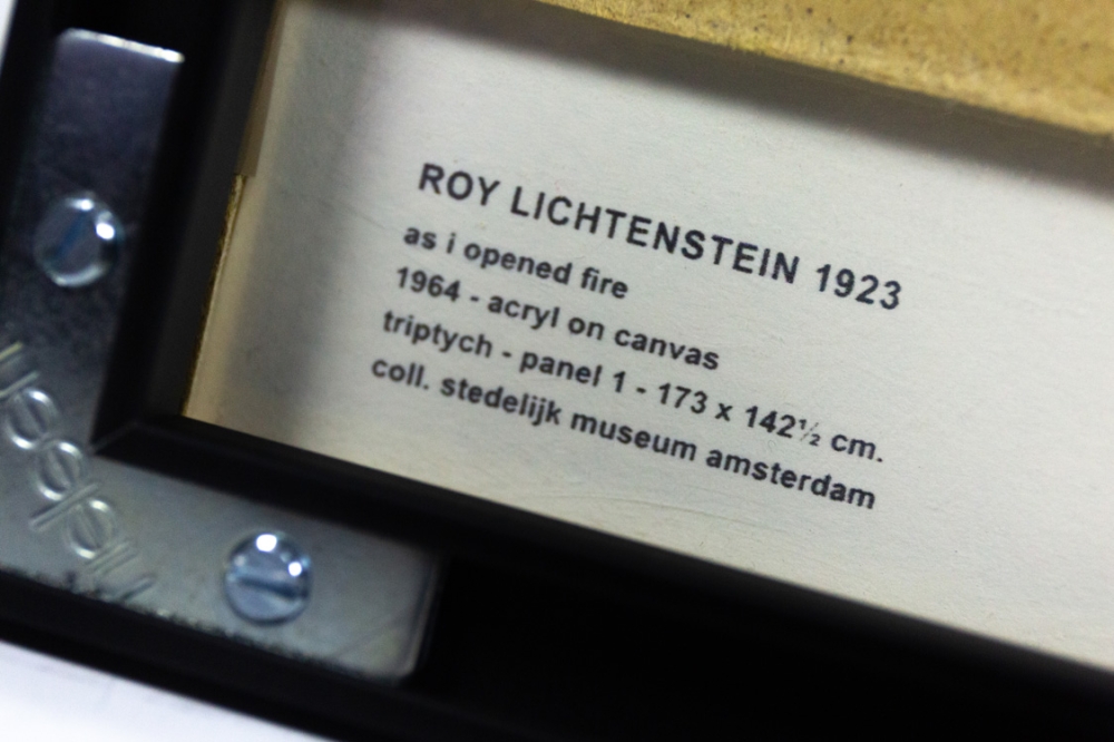 Première (ancienne édition des années 1960) par le Musée Stedelijk d'Amsterdam (SMA) de "Comme j'ai ouvert le feu" de Roy Lichtenstein. La peinture à l'huile originale sur toile est visible au SMA.