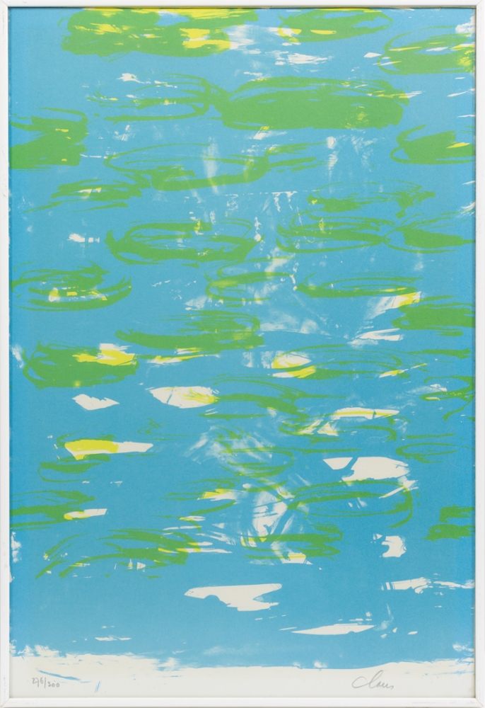 Lithographie de Hugo Claus intitulée Spring 2. L'uvre comprend également un poème monté au dos.