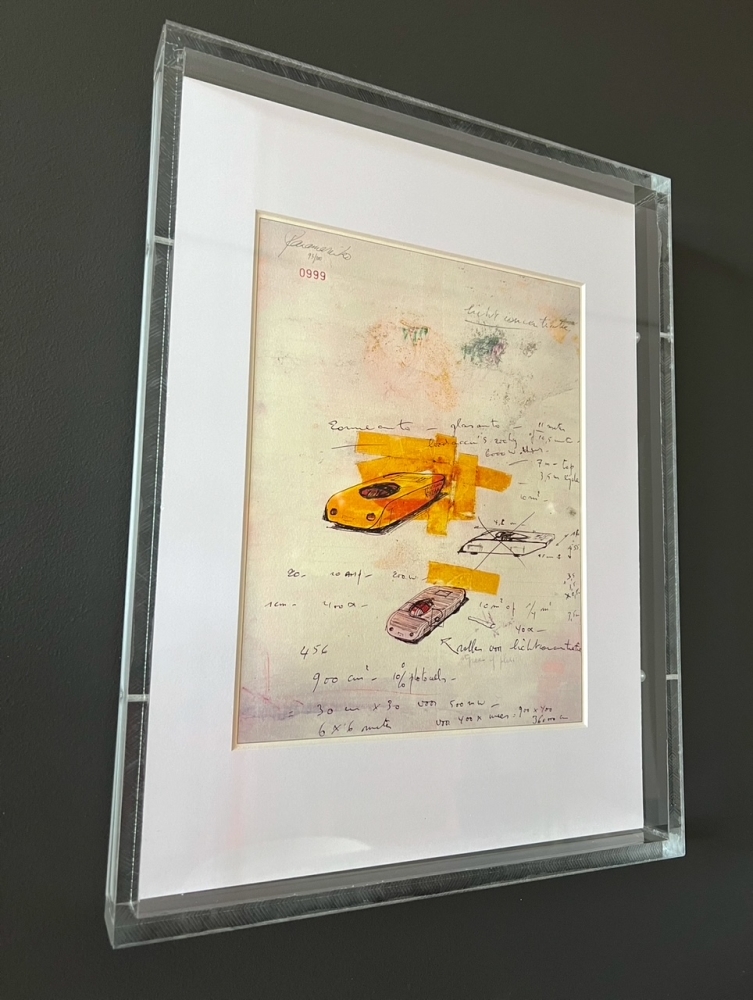 offsetprint van Panamarenko in een mooie plexibox . Gesigneerd in de druk en machinaal genummerd in rode inkt , nummer 999. De offset hoort bij het boek "miniatuur avontuur". Uitgegeven in 2004. Verkoop is inclusief het boek. Boek , offset en plexibox in goede staat.