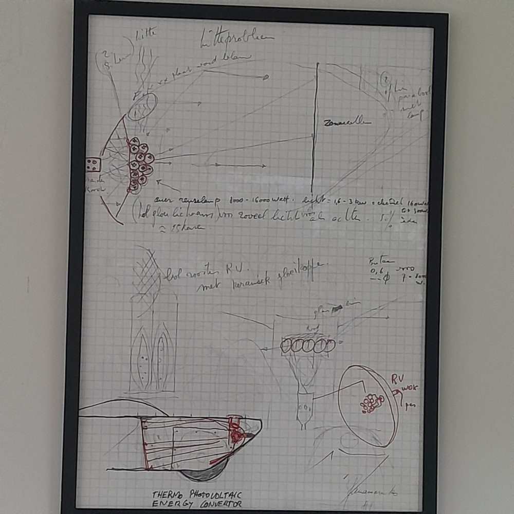 Panamarenko Problème de chaleur Lithographie issue du dossier Convertisseur d'énergie thermo photovoltaïque. L'exemplaire proposé est un rare "AP" ou "Artist Proof" signé à la main et numéroté. Ce travail a été présenté pour la première fois dans le "Convertisseur d'Énergie Thermo Photovoltaïque" le 21 octobre 2001. Oeuvre en excellent état, encadrée professionnellement.