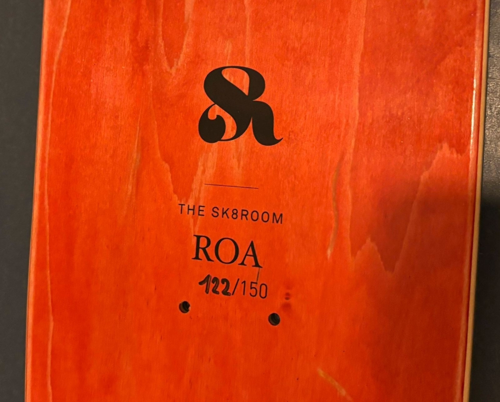 Zelden aangeboden beperkte uitgifte op 150 exemplaren in perfecte staat De in België geboren kunstenaar ROA is een muralist en kunstenaar die bekend staat om zijn gigantische zwart-witte dieren die in alle grote steden van de wereld te vinden zijn. ROA werd onlangs geselecteerd voor Art in the Streets, de eerste tentoonstelling gewijd aan graffiti en straatkunst in het MOCA, waar de 50 beste straatartiesten aller tijden samenkwamen 'Verval' 1 2012 Skatedeck 8 x 31 inch (20 x 80 cm) Zeefdrukken op 7-laags Canadees esdoornhout van klasse A. Gelimiteerde editie 141 van 150 Met de hand genummerd op de voorkant