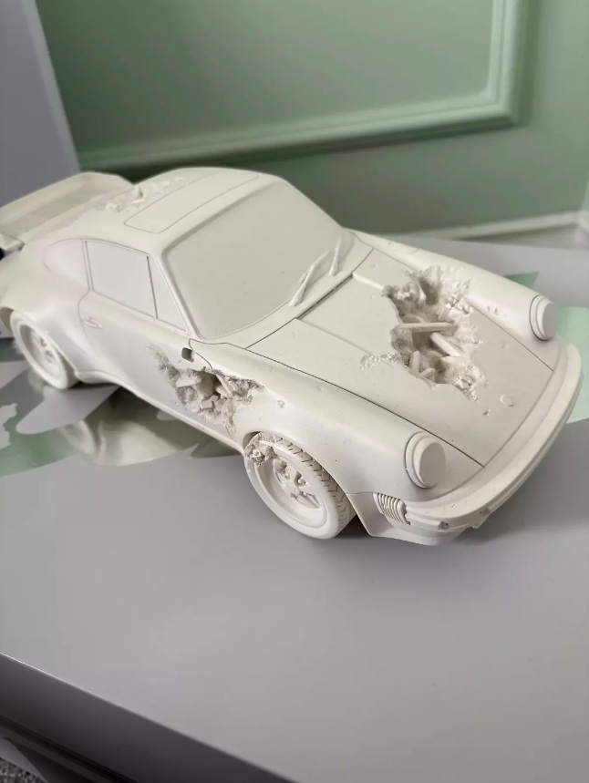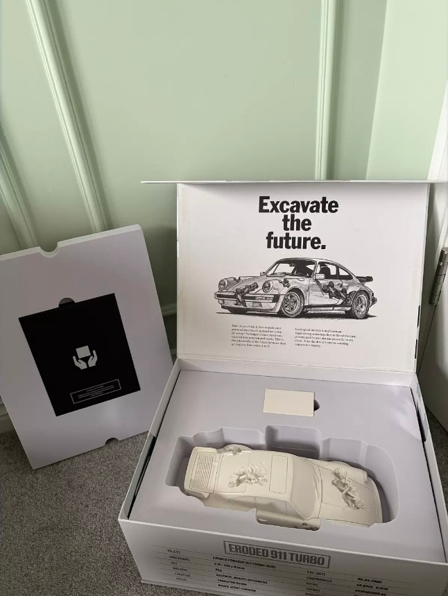 Daniel Arsham 1986 Porsche 911 Turbo 3.3 (930) Prod. van Arsham Studio. Dit stuk is de witte editie, genummerd xxx van een gelimiteerde oplage van 500. Een uitzonderlijke kans om een echt verzamelwerk van de beroemde kunstenaar Daniel Arsham te verwerven, met zijn iconische interpretatie van de Porsche 911 Turbo 3.3 (930).