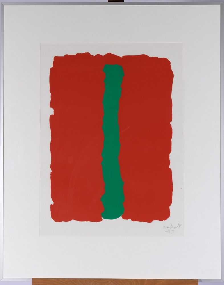 Très belle lithographie de Bram Bogart, composition rouge-vert. L'oeuvre est signée à la main par l'artiste et numérotée au crayon. Tiré d'une édition limitée à 190 exemplaires, il s'agit du numéro 146. La lithographie est en parfait état et encadrée. Les uvres originales de Bram Bogart sont progressivement devenues inabordables. Occasion unique d'acquérir une belle édition de lui.