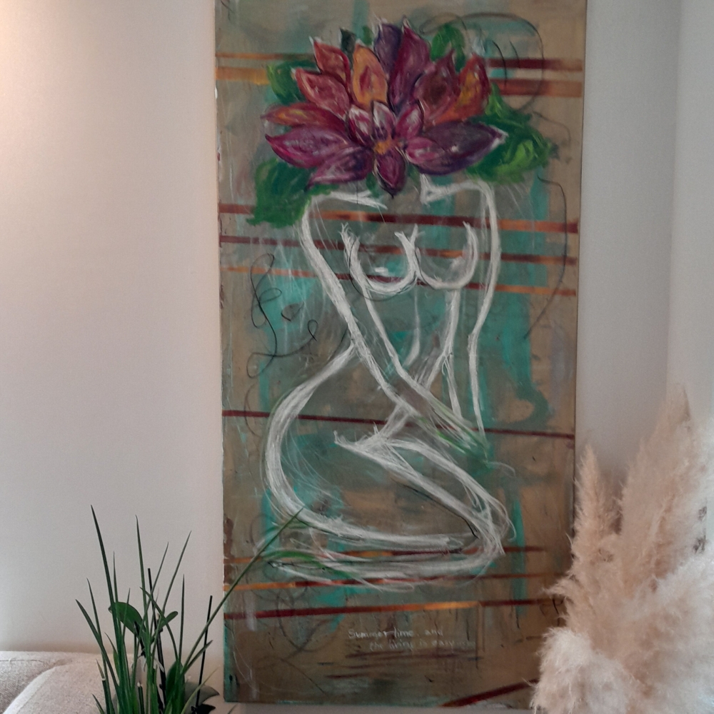 Zita Monori est l'une des artistes hongroises les plus célèbres. Dans cette uvre de 140x80, elle utilise une combinaison saisissante d'acrylique et de poudre d'or 24 carats. Cette uvre est un expressionnisme abstrait avec un art figuratif qui continue d'étonner.
