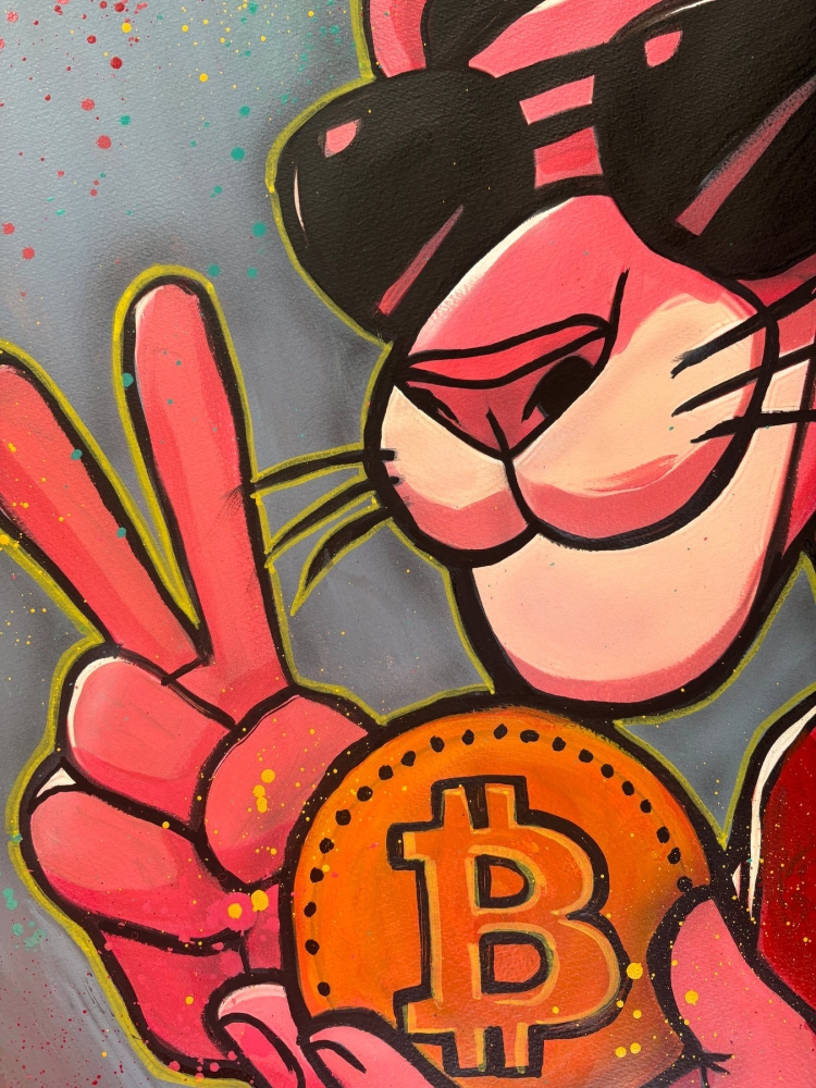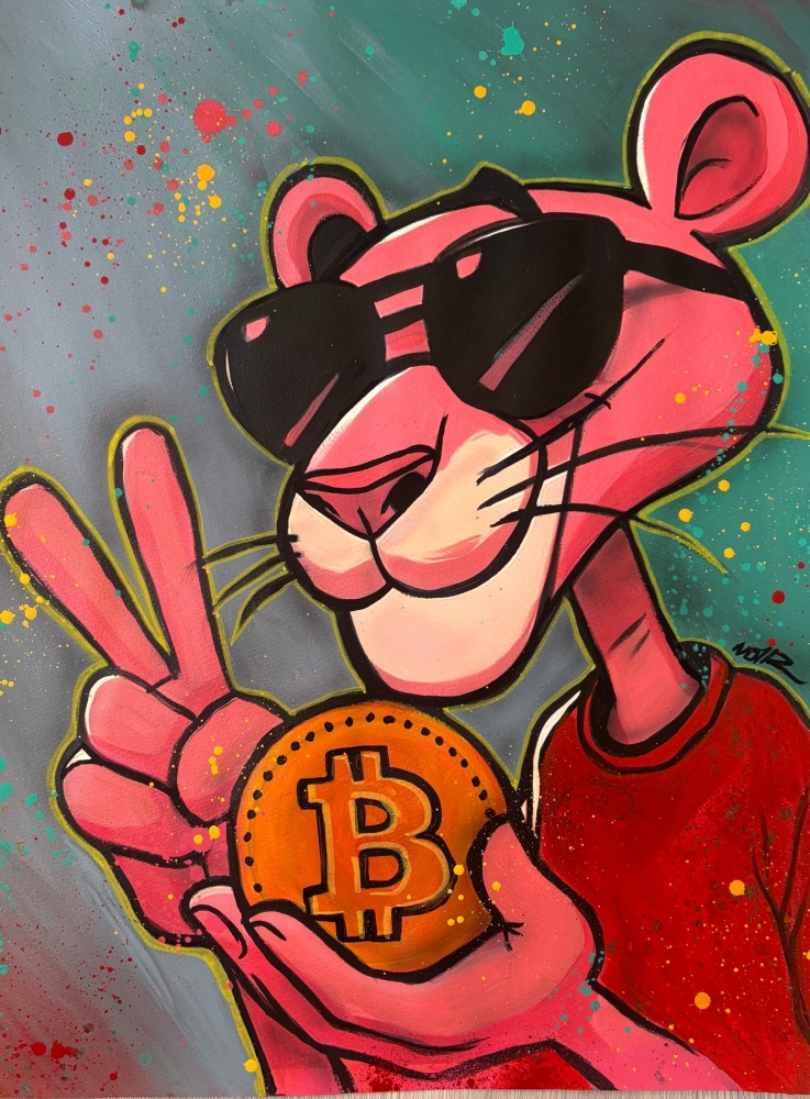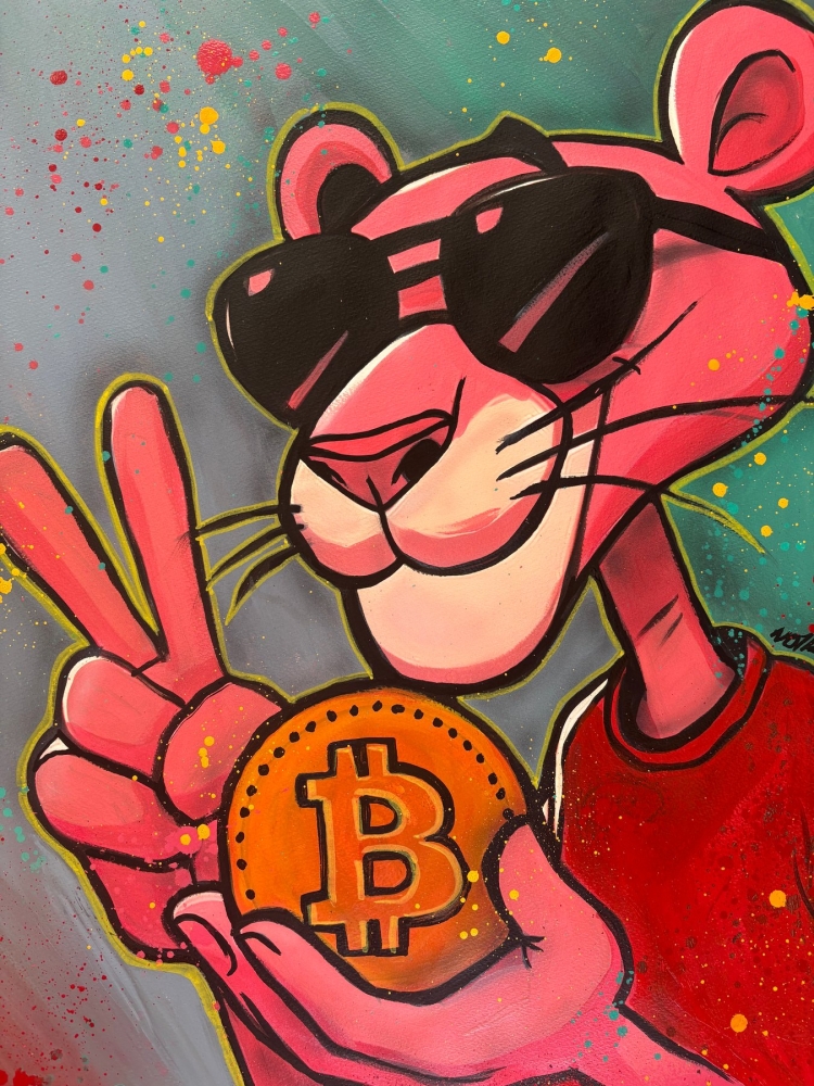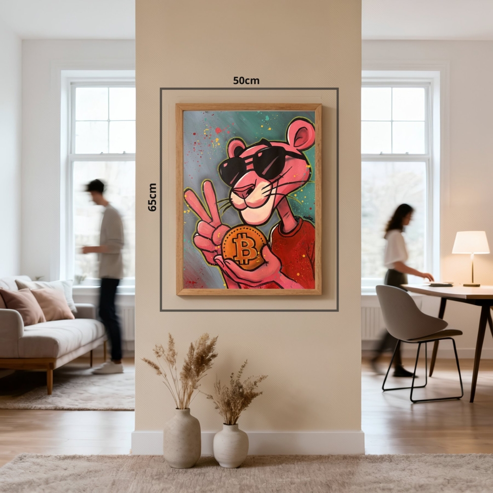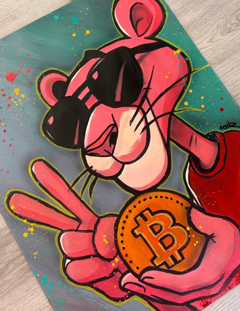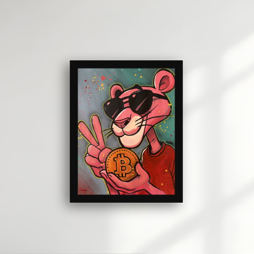 "Pink Panther: This Is Not Financial Advice" Introducing an exceptional interpretation of this Noir's piece, this artwork is a mixed media on paper titled "Pink Panther: This Is Not Financial Advice" This exclusive edition highlights the artist's passion In every stroke, Noir's work reflects an unwavering commitment to the art form. -This is a unique work of art, hand-signed and with a certificate of authenticity, delivered to your door. -Sent rolled in a tube. -This is a Mixed Media Artwork on paper, so you should expect some flaws, imperfections splatters, small cracks or wrinkles can also happen, and when it does, it's part of the artwork. -Sent rolled in a tube. -Colors may shift due light conditions at the moment of the photo. *do not leave it in the tube Noir, a passionate artist, discovered her deep-seated love for Urban art and Illustration from a tender age. Over the years, Noir's artistic journey has unfurled, expanding the skills into various creative realms, including concept art and digital painting, music, 3d sculpt and traditional painting. With an unbridled fervor for the diverse world of art, and armed with a background in visual arts, Noir's work reflects an unwavering commitment to the art form. Exploring Noir's portfolio is an invitation to enter a realm where imagination knows no bounds