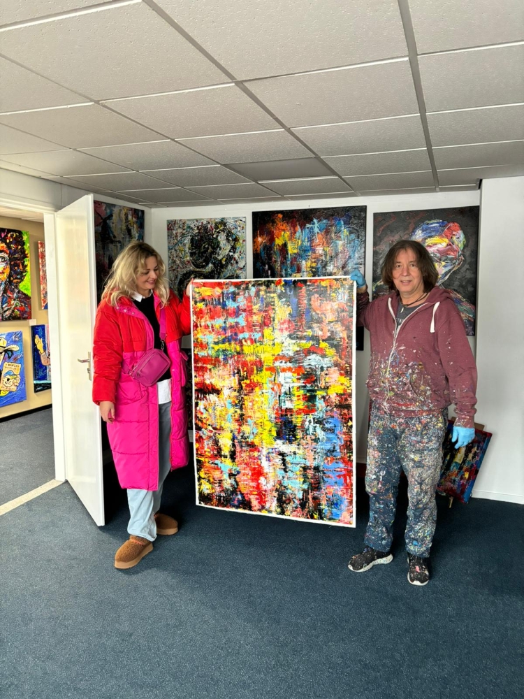 Grande peinture expressionniste abstraite unique de la série d'uvres appelée « Esprit et matière » avec une grande taille totale de toile (avec bords extra blancs) 130 x 100 x 01 cm. L'uvre a été peinte en 2024. La peinture est expédiée enroulée, sans châssis. Une fois montée sur châssis, la toile mesure (ceinture) : 120 x 90 x 2 cm. Pour information : le prix Original Gallery de cette uvre est de 2650 euros. Dans cette uvre, jai libéré mes émotions les plus profondes, permettant aux couleurs et aux puissants coups de couteau de se croiser dans une danse dynamique. Le chaos crée un sentiment dharmonie, symbolisant la tension vibrante entre le terrestre et le divin. L'uvre est peinte avec de grandes palettes et la technique du Dripping (Action Painting) - avec de la peinture acrylique sur toile XXL. La peinture est expressive et avec beaucoup de dynamique sur la toile. Verni et avec certificat d'authenticité. La dynamique, l'expression et la liberté d'expression artistique de l'artiste sont clairement visibles. uvre expressionniste abstraite originale et tout à fait unique de l'artiste professionnel/contemporain néerlandais (depuis le début des années 1980) Jovan Srijemac (1962). ..Cette uvre sintègre bien dans un intérieur ou un espace de bureau moderne. L'état de l'ouvrage est excellent, éditeur, avec certificat d'authenticité. Le chaos d'idées qui a surgi dans ma tête, l'énergie intérieure privée, veut sortir, comme un volcan, devenant une explosion et une symphonie de couleurs sur la toile, encadrée d'équipements, de figures, de visages ou d'une composition abstraite. ''