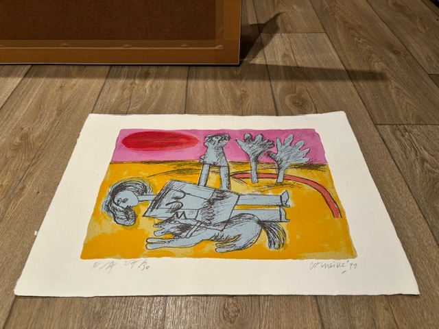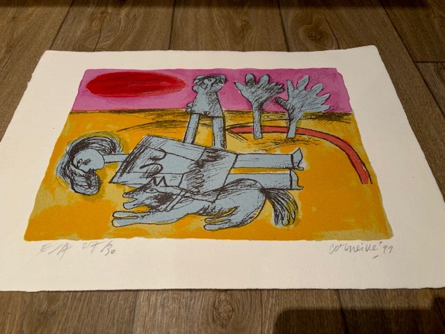 Zeer mooie litho van Corneille, genaamd Promenade D. Slechts 30 exemplaren waarvan dit nummer 27 is. Mooi en decoratief kunstwerk op kwaliteitspapier en in podlood onderaan gesigneerd door de kunstenaar.