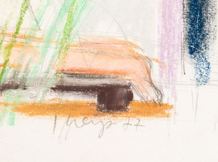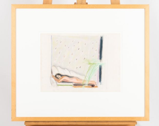 Beaux médias mixtes de crayon et pastel sur papier par Yvan, ils de 1977 dans son style typique selon la nouvelle figuration. Flottant professionnellement à PassePartout encadré dans la liste de cuisson en bois de nature.